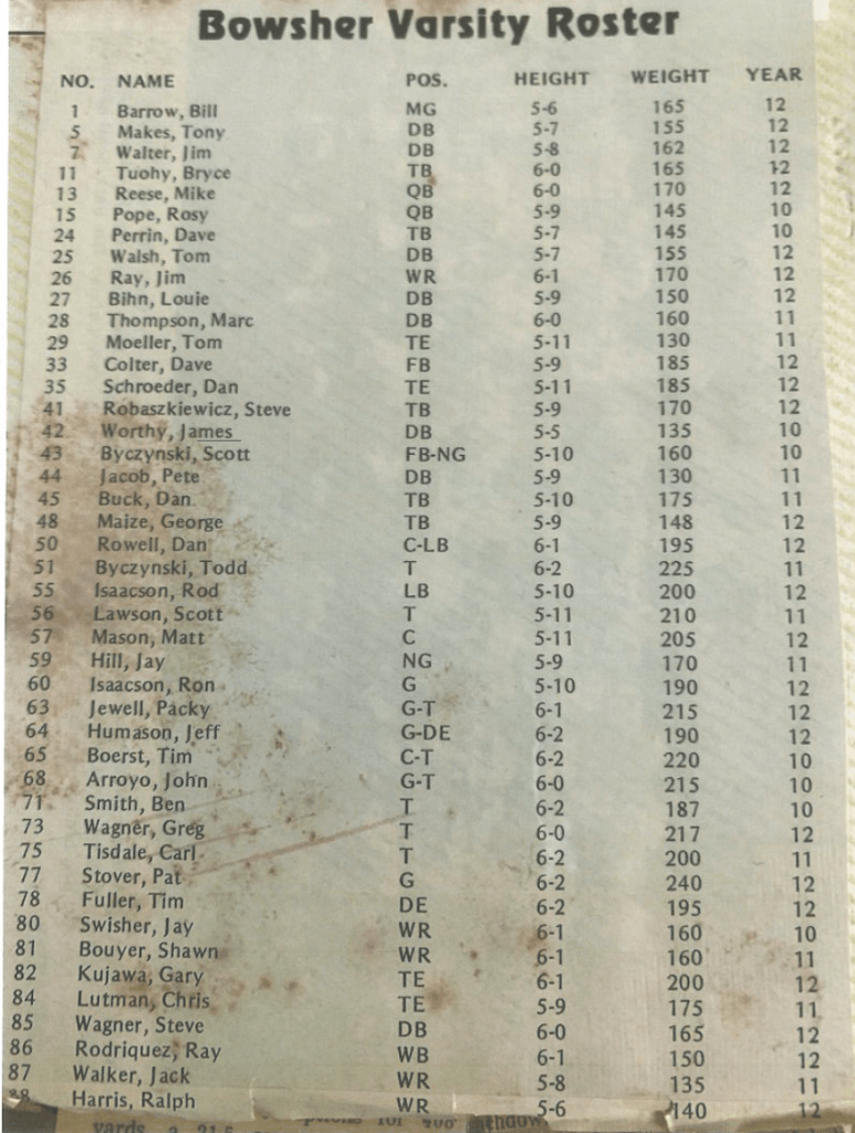 The team’s strength was a versatile offense, and uncharacteristically for a Bowsher squad of the time, could strike quickly and often through the air via co-captain and quarterback Reese, wide receiver Harris, and a fierce group of receivers. The offensive line – dubbed the “Hogs” by Coach Neuendorf – and a stable of potent running backs relentlessly pounded opponents and ground out many long, punishing drives, hustling to the line of scrimmage while battered defenses struggled to regroup from the last play.