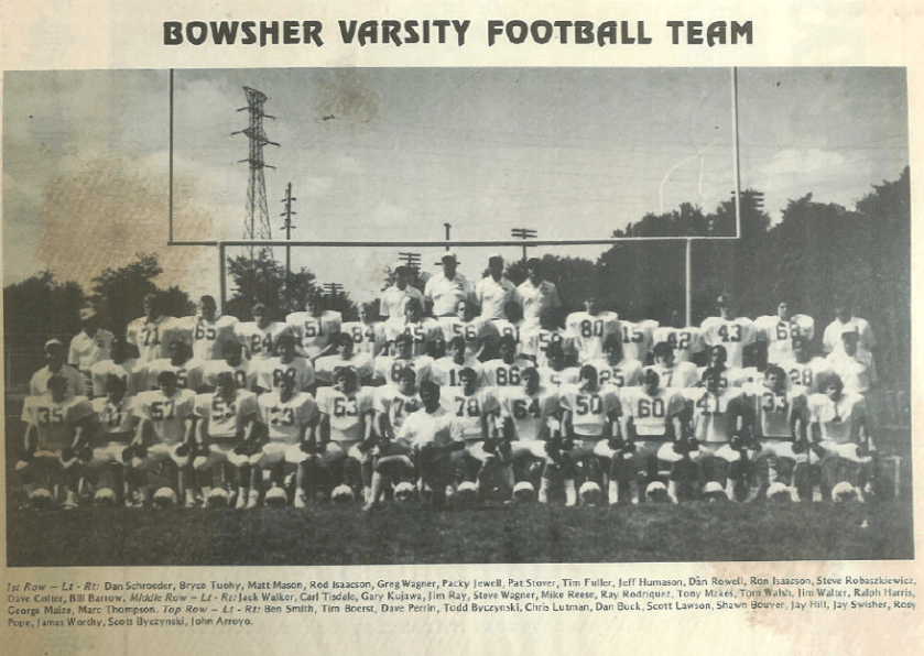 There was a steely resilience that formed among these bonds of team, brotherhood, and friendship. This stubborn trait built to a crescendo and powered a furious effort in the final game of the season against rival St John’s, with a trip to the Shoe Bowl at stake. The Titans jumped out to a shocking 28-0 lead, powered by three early Rebels turnovers, an all-world performance from their tight end, and a key injury to Bowsher’s defensive unit. To a man, the Bowsher players dug deep, faced with the possibility that this could be the last time they would ever battle together on a football field. The Rebels came storming back, but ultimately fell just short of victory, 35-28. But no one on that Bowsher team hung his head that night, and they made Bowsher fans proud. Many who saw that game still say it is one of the best high school football games ever played in the Toledo City League. Co-captain Mike Reese received TV Channel 24 Player of the Week honors for throwing three touchdowns, running for another, throwing for 253 yards, and rushing for 73 yards. Their rival edged out the mighty Rebels that night, but the Bowsher players gave everything they had and left it all on the field.